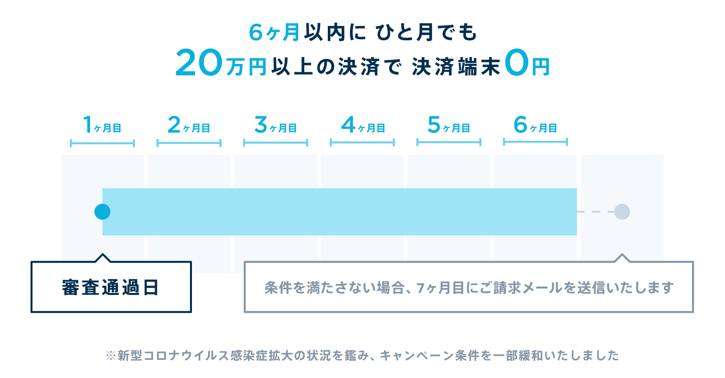 ・条件を満たさない場合、7ヶ月目にメールにて決済端末代金(19,800円)をご請求いたします。